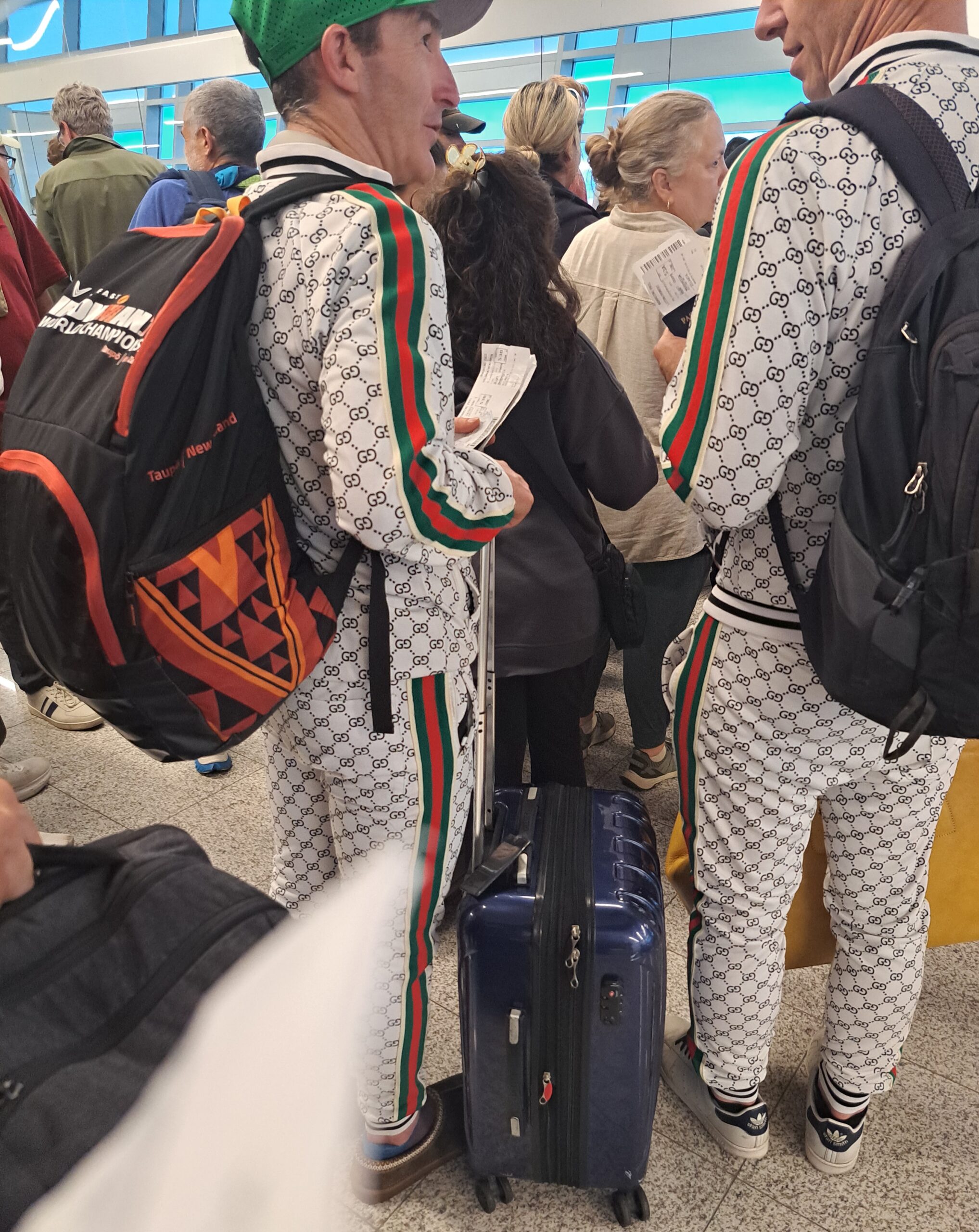 I became obsessed with these two men. Why were they matching? Why match but not completely? Different hats and shoes? Were they wearing matching pajamas?