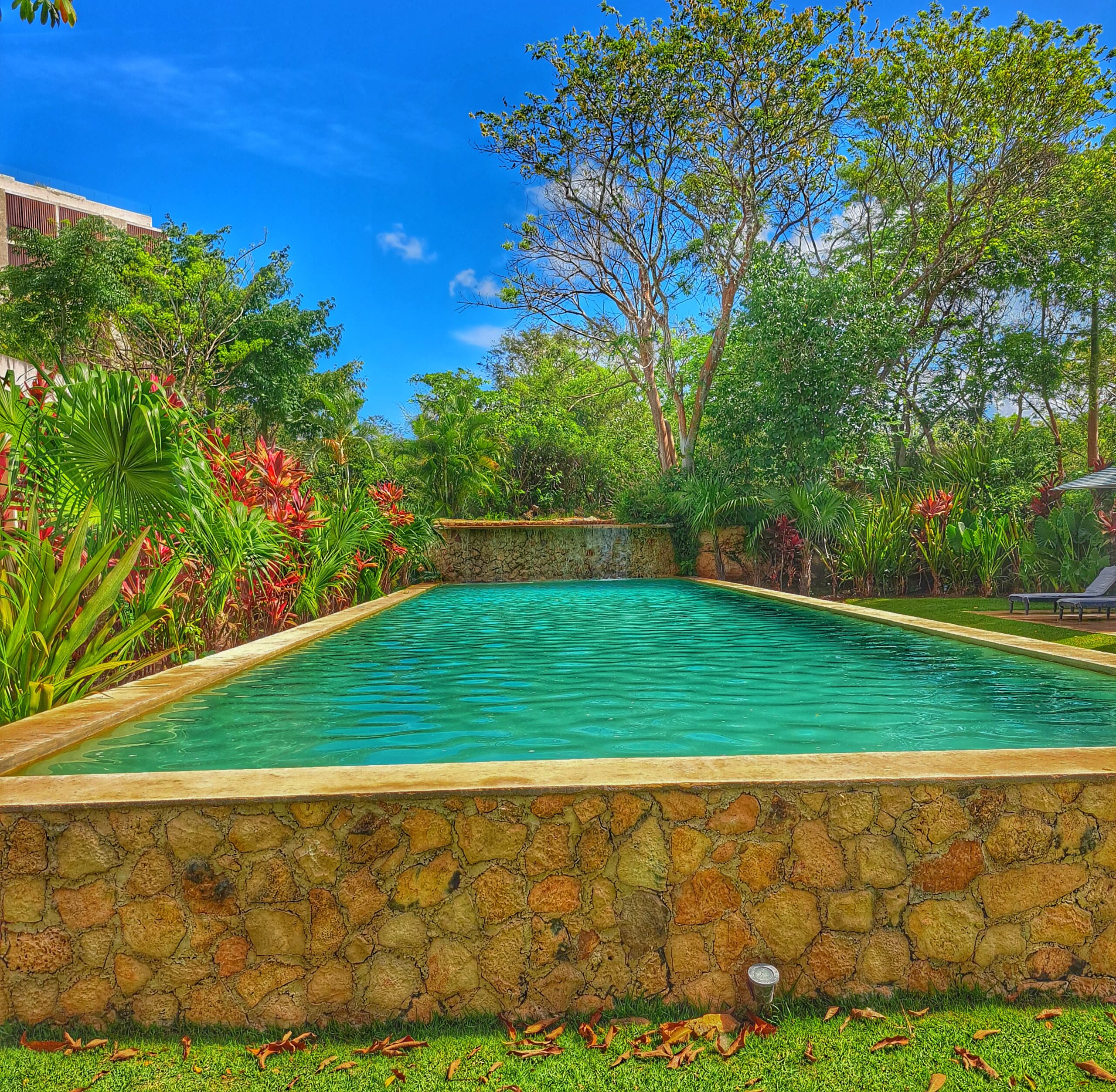After each lap there is even a mini waterfall. The views from our apartment make is feel like were in the Yucatan jungle.