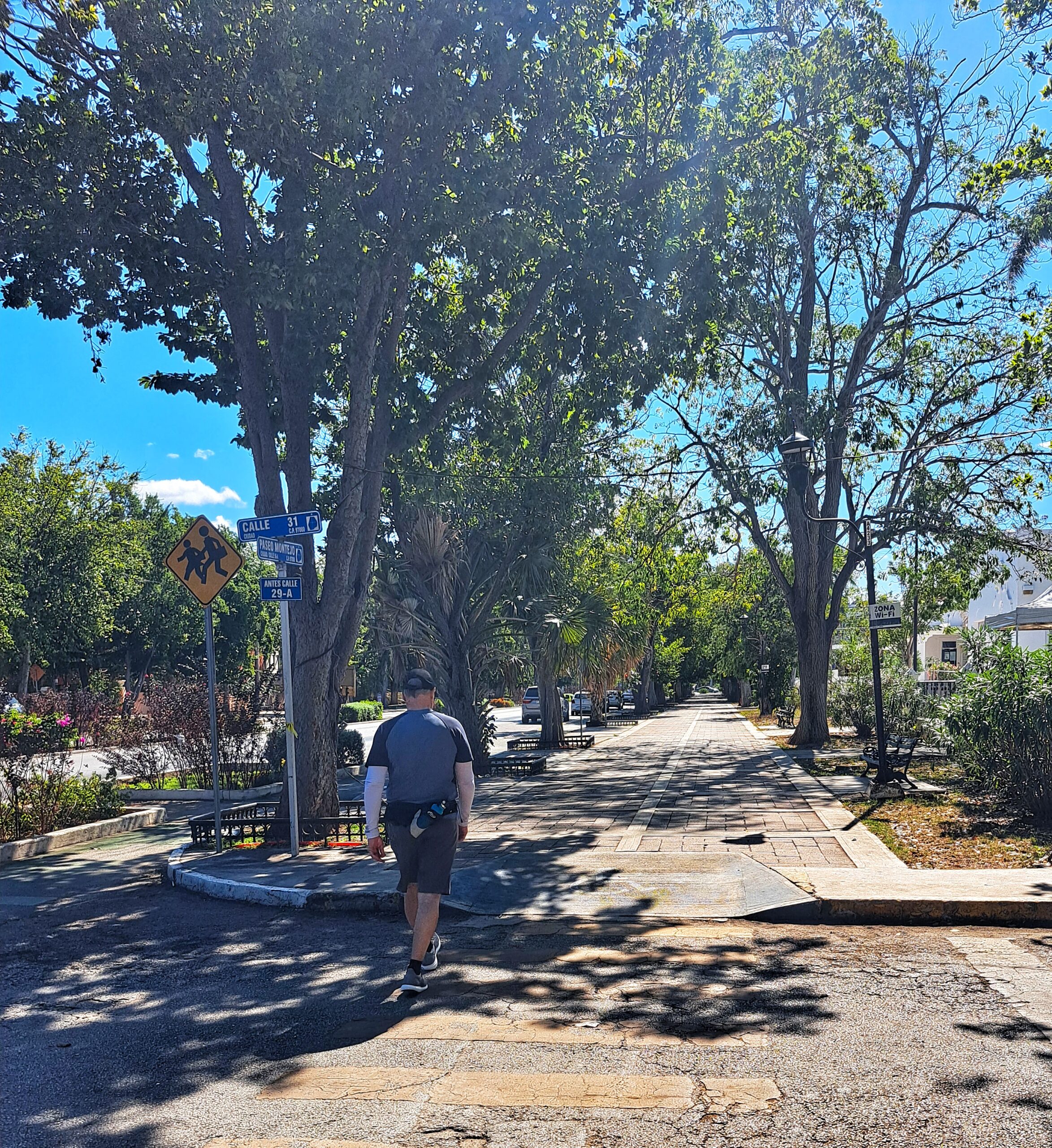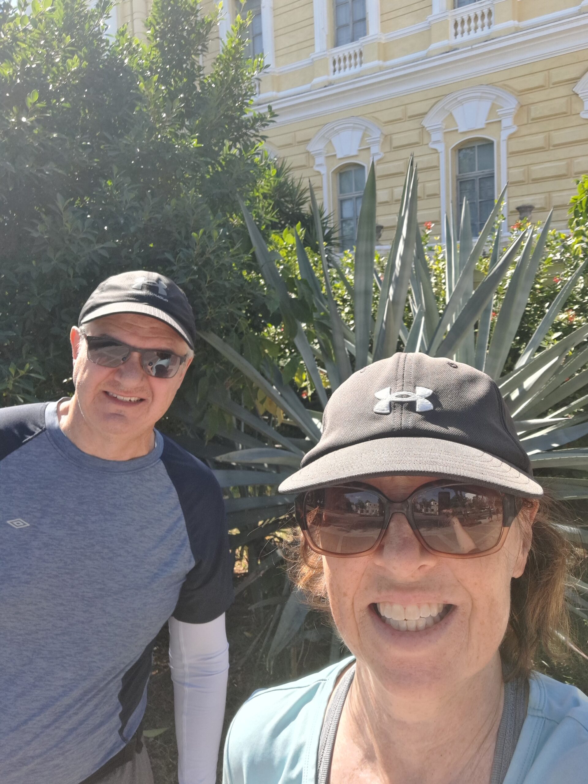 Now that the weather is not in triple digits we’ve been able to walk outside more. This walk is down the fancy street